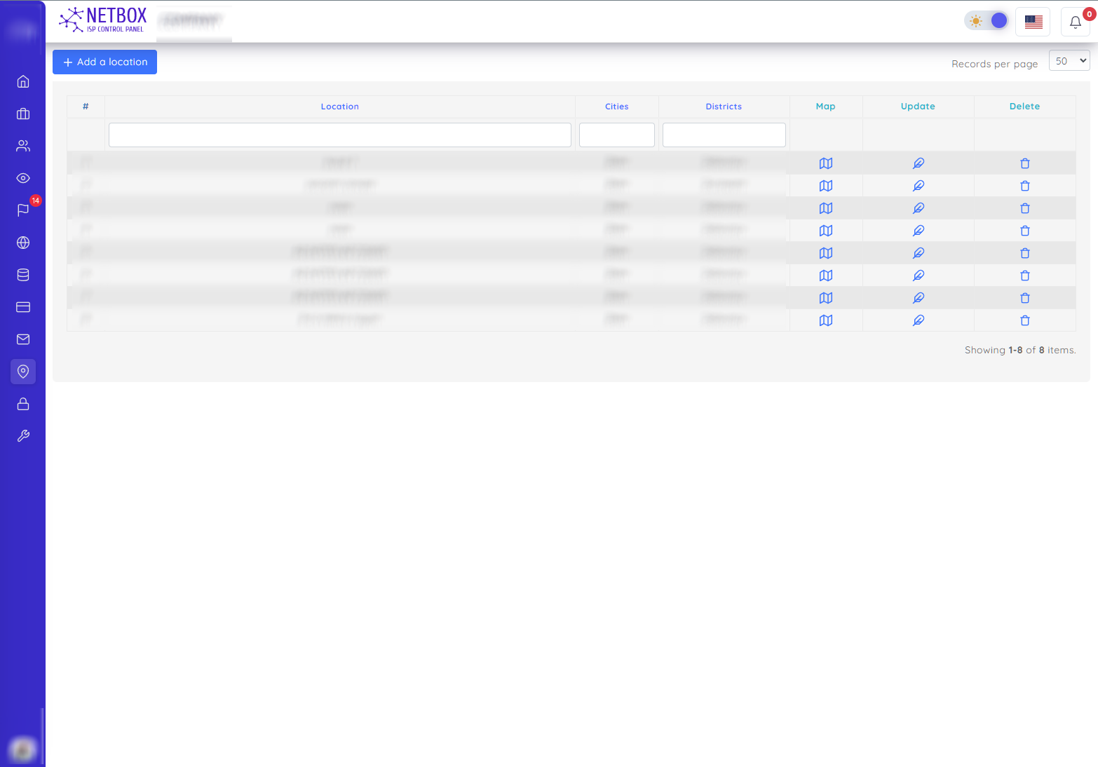 On this page, you can search by the name of the street, city, district and location. You can also do the following operations