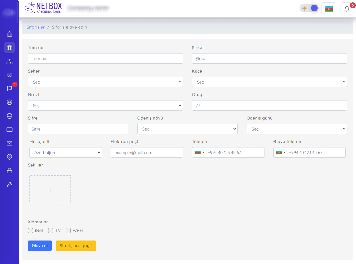 - Telefon - Abunentin telefon nömrəsi ( Əlavə nömrədə yaza bilərsiniz )