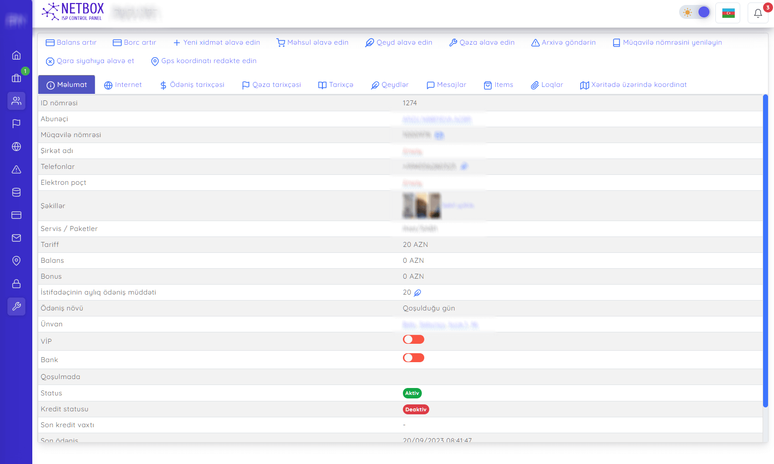 - Loqlar - Operatorlarımız tərəfindən abunəçini üzərində aparılan bütün əməliyyatları izləmə imkanı