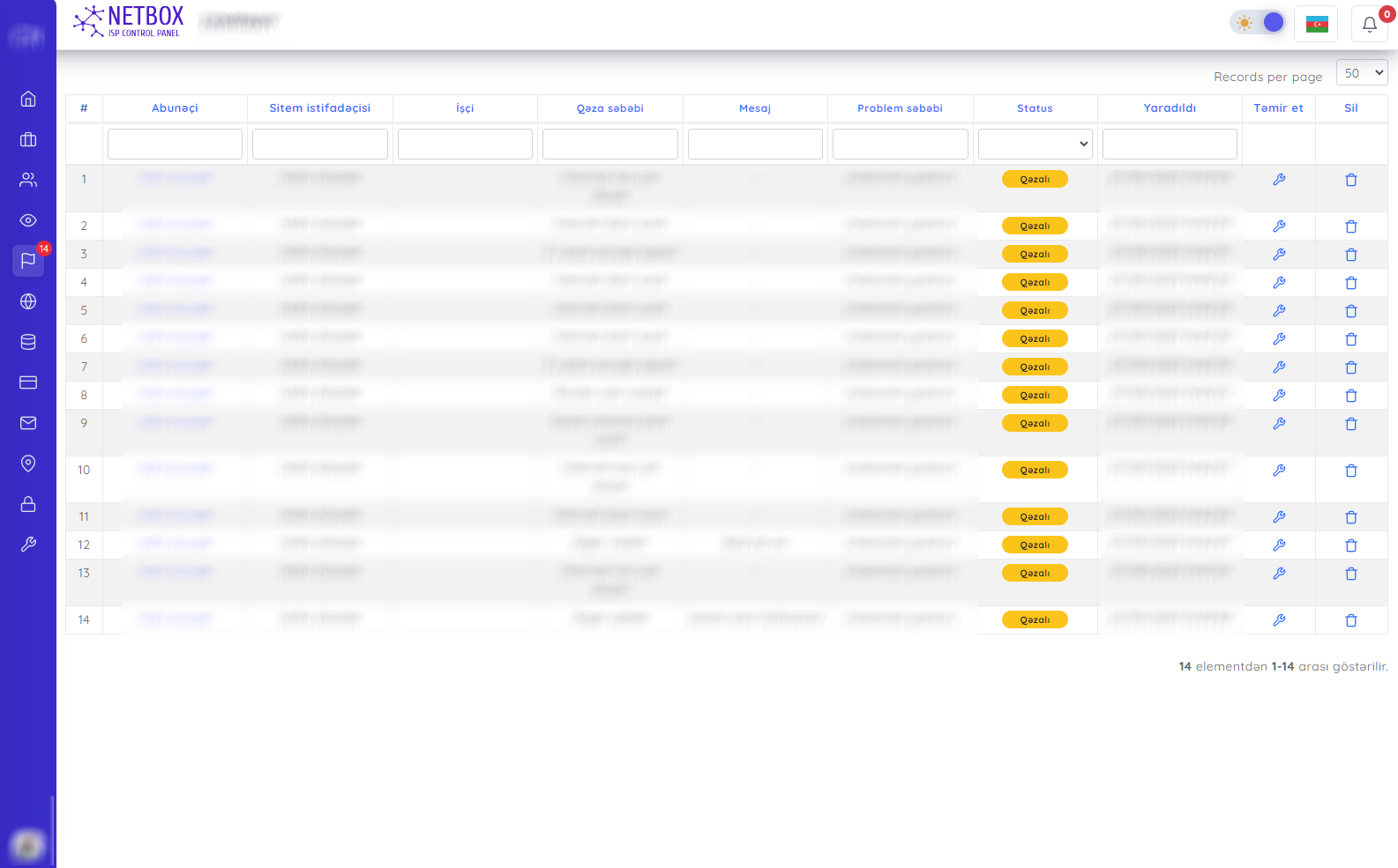 Bu səhifədə qeydə alınan şikayətlər və qəzalar qeydə alınır. Şikayət və ya Qəzanı təmir edə həmçinin əsassız bir sorğudursa silə bilərsiniz.