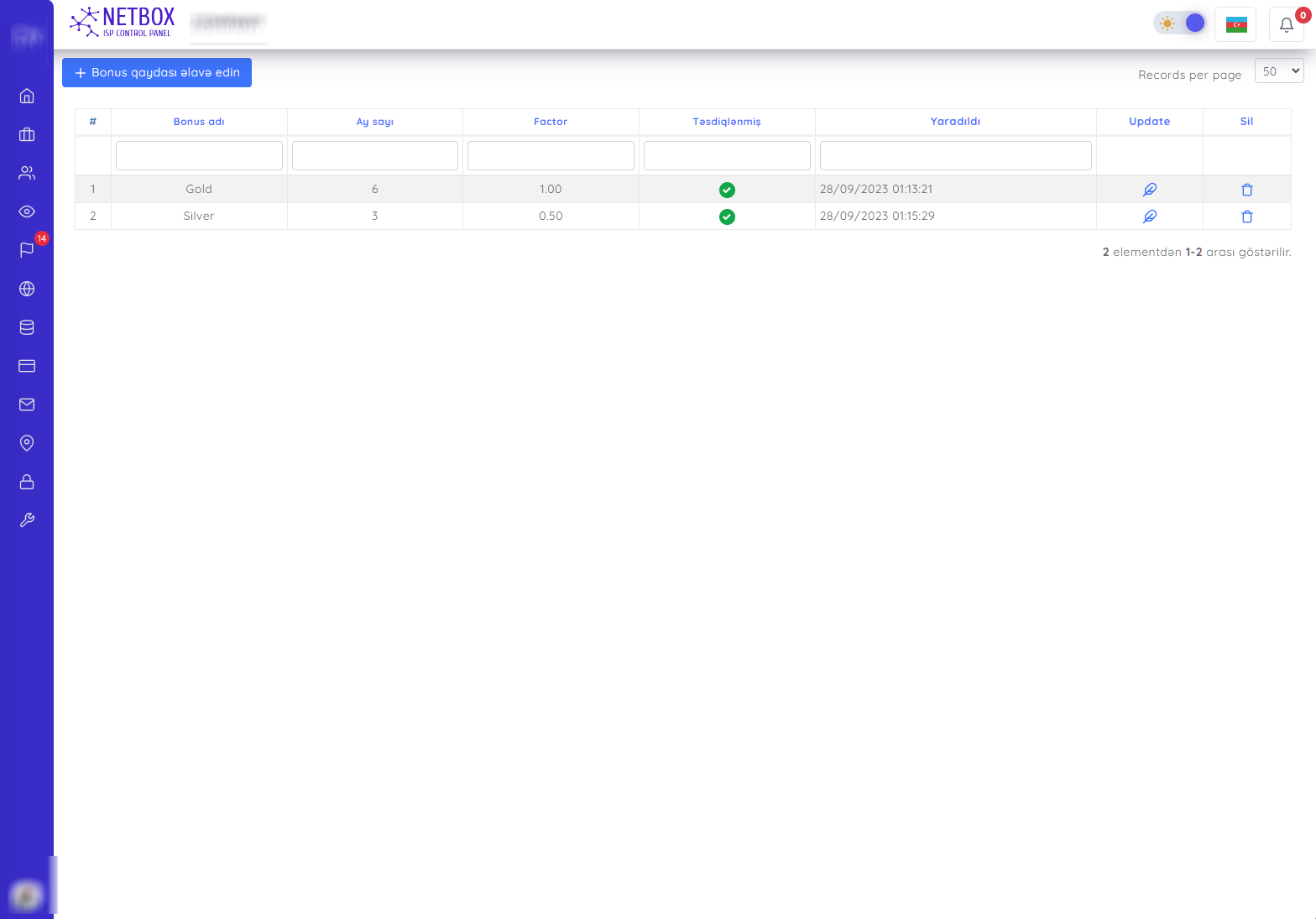 Bu səhifədə isə Bonus qaydaları yarada bilərsiniz. Yuxarıdakı şəkildə 2 ədəd yaradılmış bonus hesablama qaydası vardır.