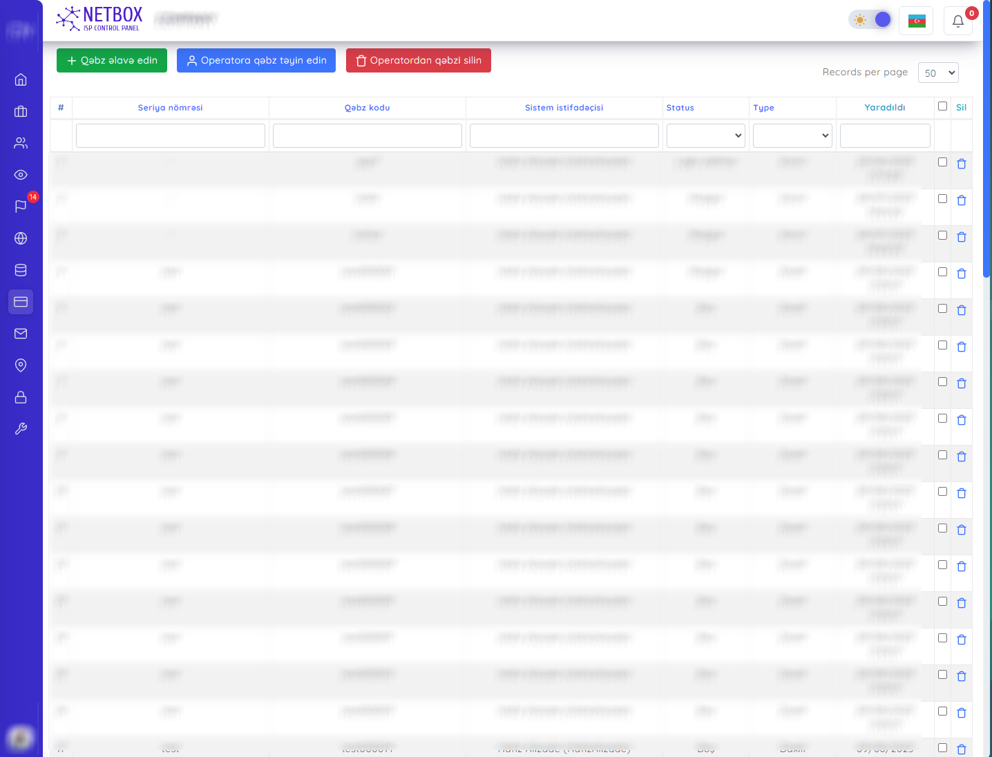 Operatorlara qəzb təyin etmək üçün "Operatorlara qəzb təyin et" düyməsi ilə - Təyin olunmuş qəbzləri her hansı bir operatordan silmək üçün isə "Operatordan qəbzi sil" düyməsi ilə bu prosessləri asanlıqa edə bilərsiniz