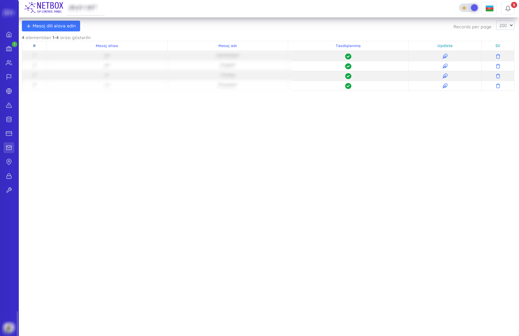 Bu səhifədə yaratdığınız mesaj dillərini görə bilərsiniz. Siz həmçinin aşağıdakı əməliyyatlarıda edə bilərsiniz