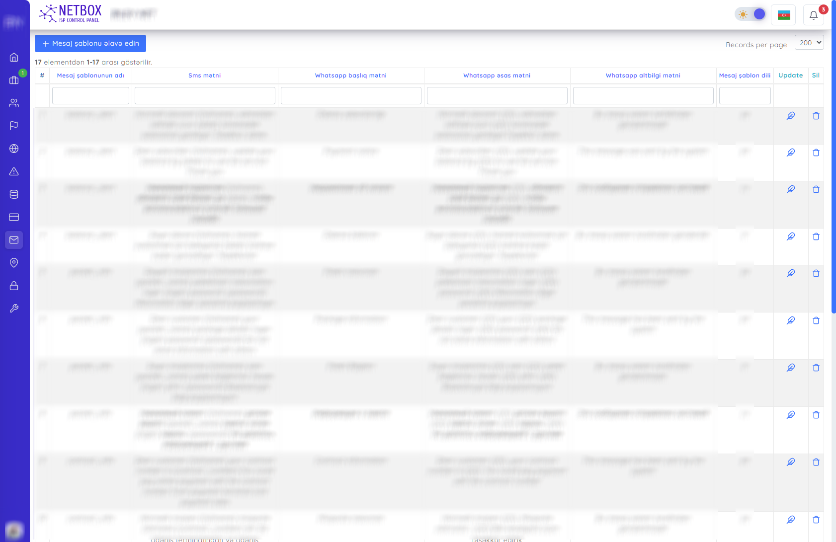 Bu səhifədə mesaj şablonlarını yuxarıdakı xanalara uyğun axtarış edərək tapa bilərsiniz. Siz həmçinin aşağıdakı əməliyyatlarıda edə bilərsiniz