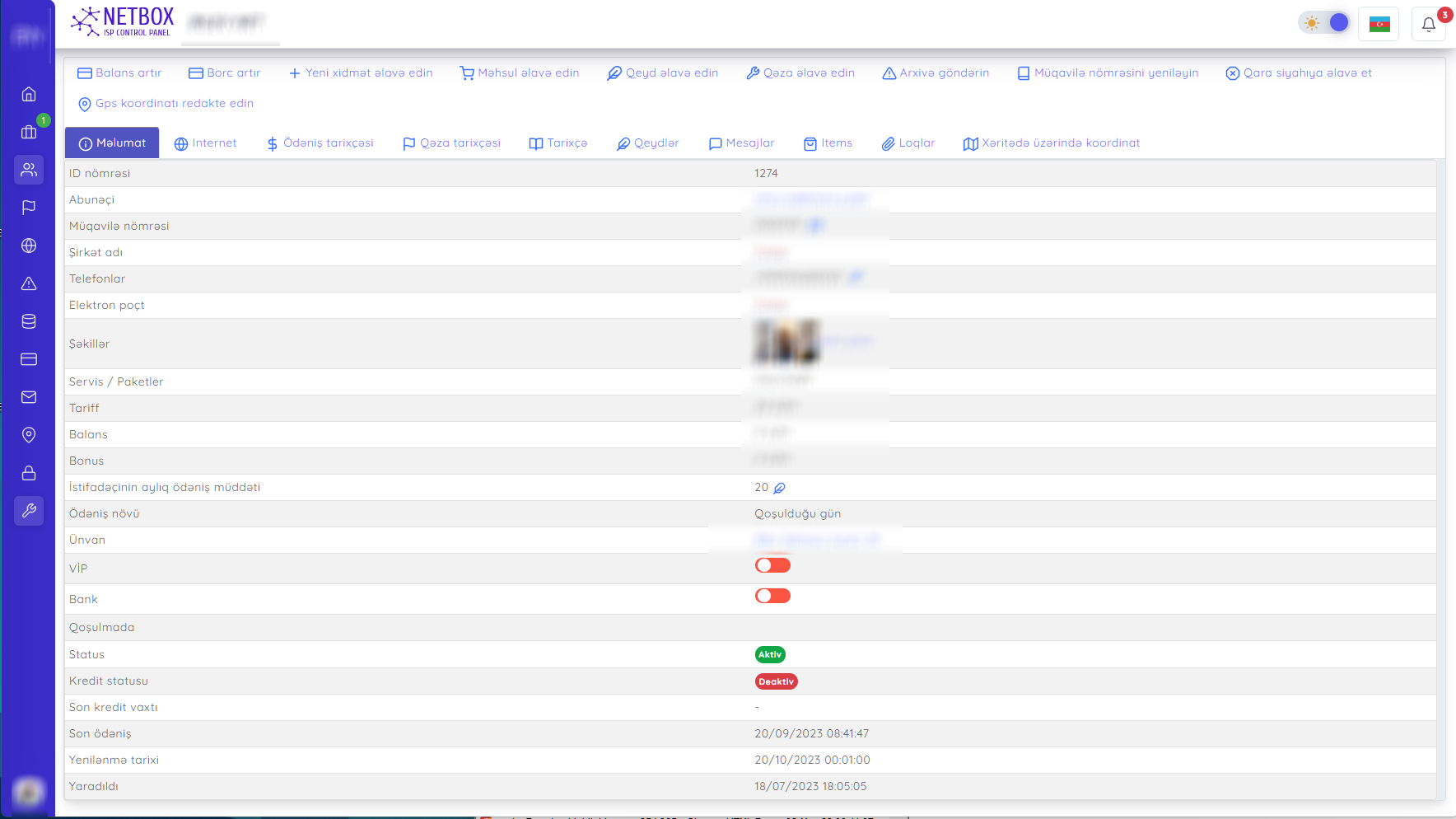 - Bilgi - Kullanıcı hakkında ilk bilgiler. Servis (İnternet, TV) - Kullanıcının aldığı hizmetlere karşılık gelen paketleri görebilirsiniz.