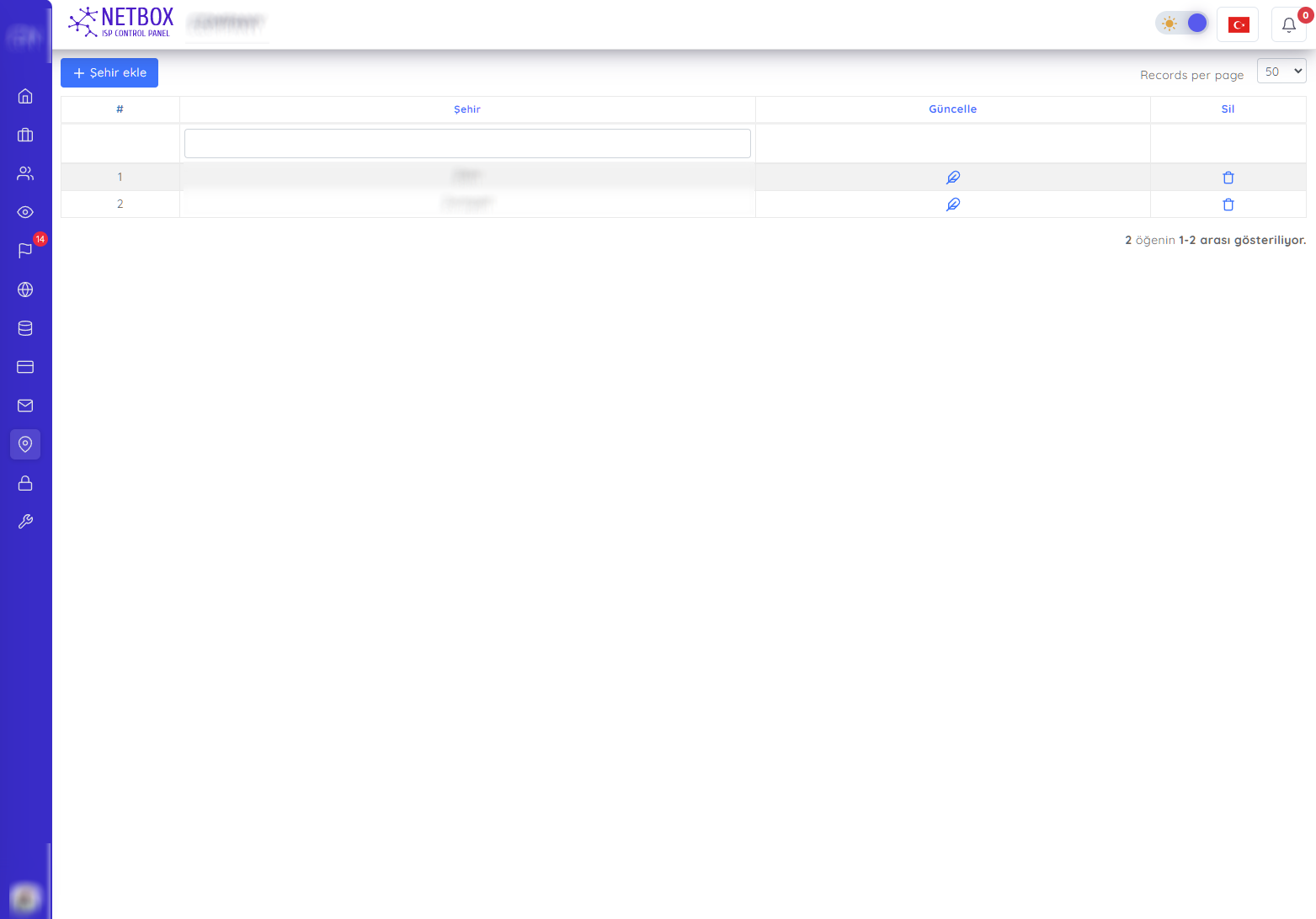 - "Güncelle" butonu ile açılan pencerede "Şehrin adı", "ilçe adı", "Abonelerin cihazlarda kayıtlı olup olmadığı" ve ilçenin koordinatlarını değiştirebilirsiniz.