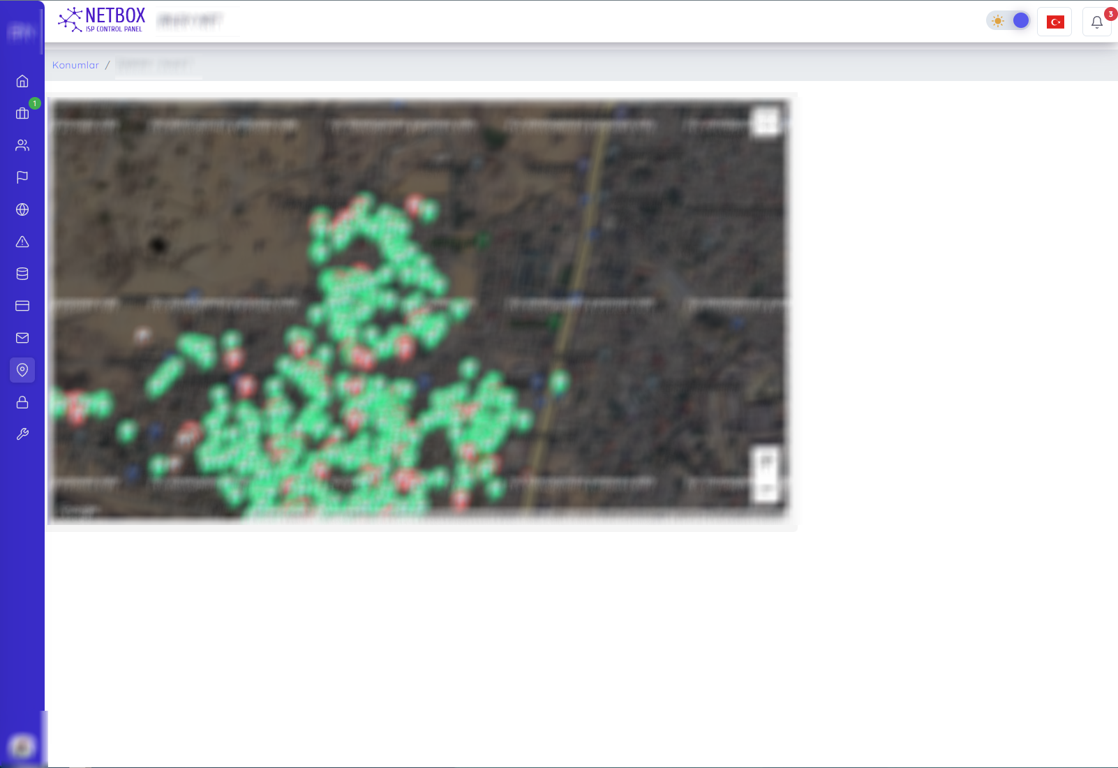 Abonelerin konumunu harita üzerinde ekleyebilirsiniz. Aboneleri haritada bulabilirsiniz. Ağ cihazlarını da haritaya ekleyebilirsiniz.